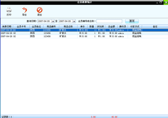 點擊“會員管理”進入到會員消費主界面如圖: