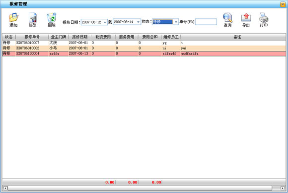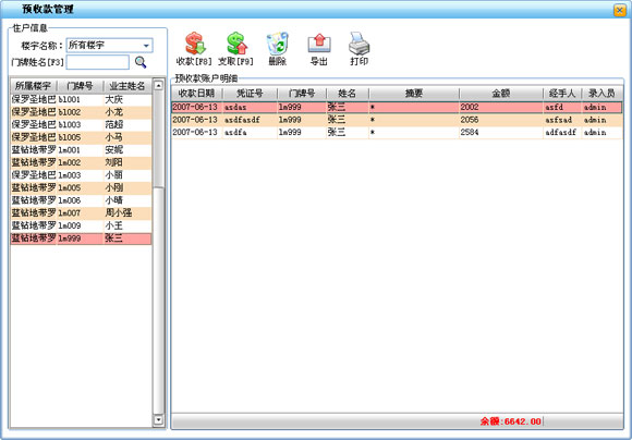 ·用來查詢每天或一個時間段內的物業收費明細,可按不同的樓宇查詢也同時查詢所有樓宇的收費情況。