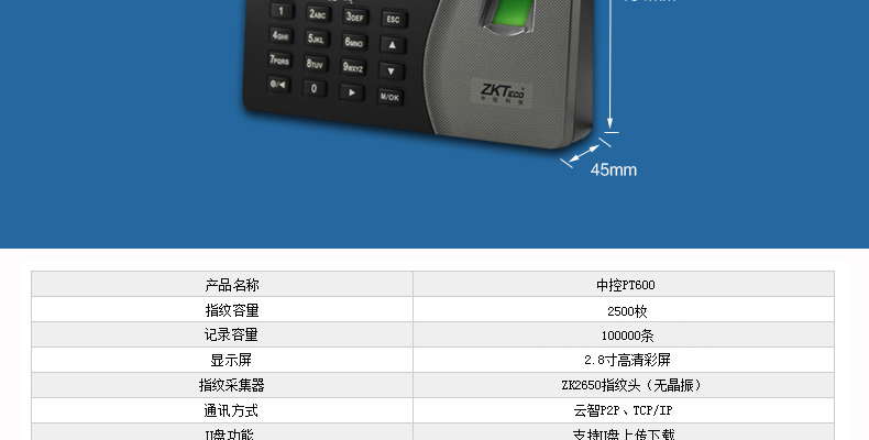 中控PT600云服務指紋考勤機