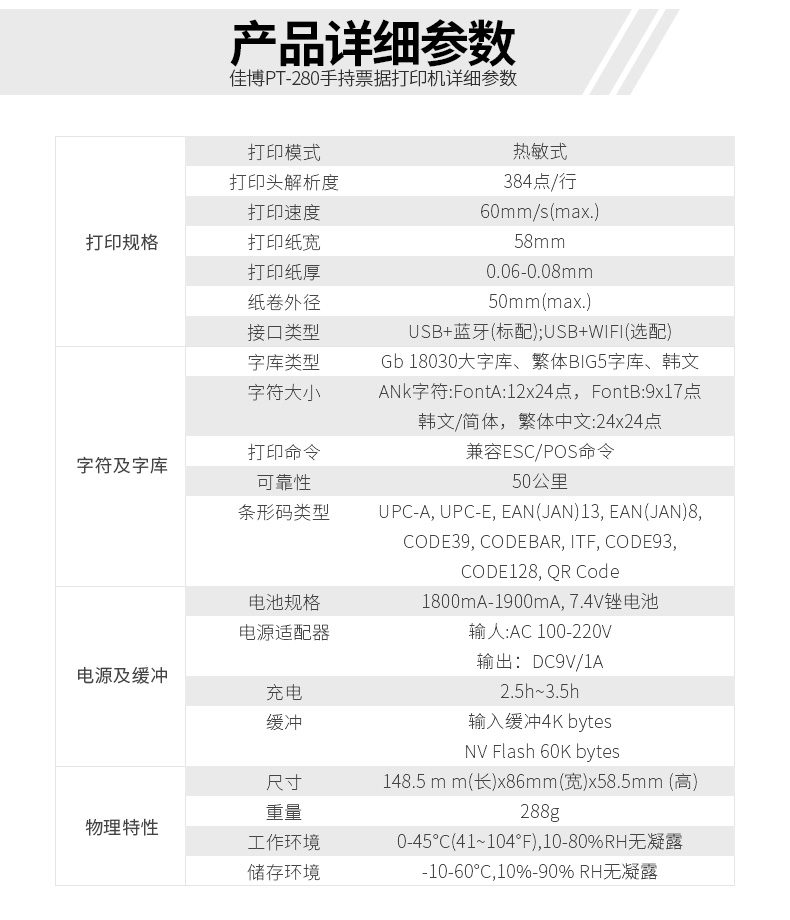 佳博PT-280手持式藍牙打印機