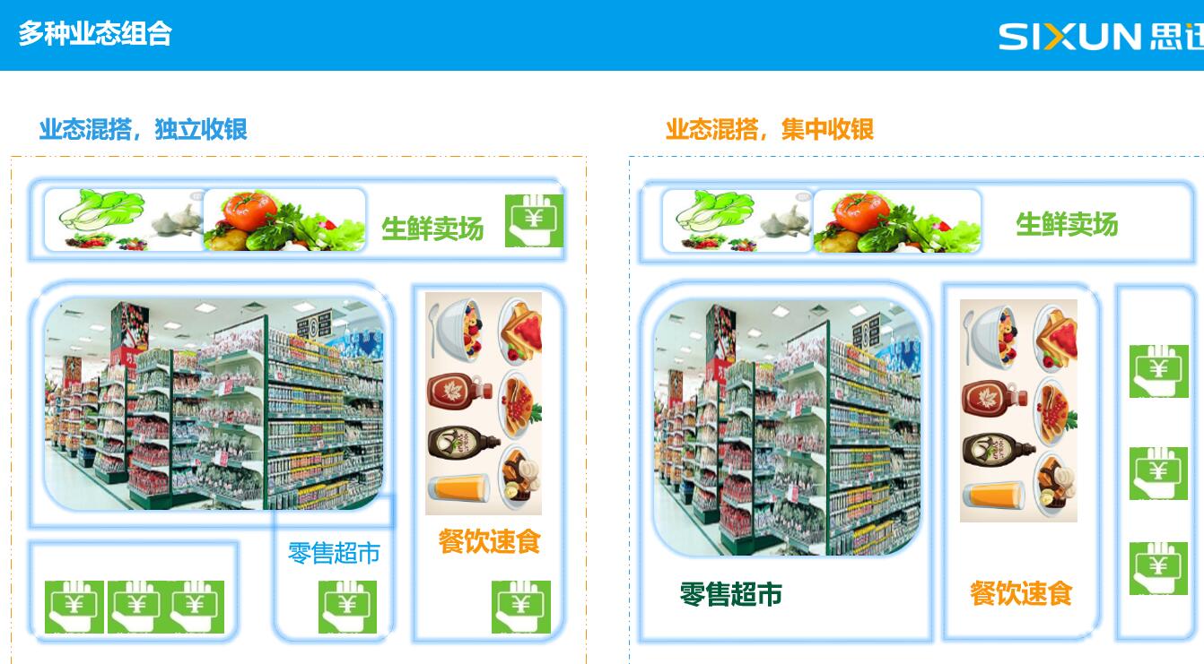 零售超市+生鮮稱重+餐飲速食+服務