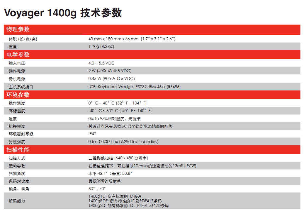 二維條形碼由于各種原因而越來越流行于眾多行業(yè)應(yīng)用中。一些企業(yè)是因為希望能夠在有限的空間內(nèi)存儲盡量多的數(shù)據(jù)信息,一些企業(yè)則是為響應(yīng)政府行業(yè)規(guī)章或供應(yīng)商的要求。更多的企業(yè)甚至只是希望在現(xiàn)在或未來能夠利用由二維影像技術(shù)引領(lǐng)的新興趨勢,而無需再去另外購買掃描器硬件。Voyager 1400g能夠支持PDF和二維條碼掃描而無需額外的增值功能配置,如先進(jìn)的圖像采集和處理應(yīng)用,從而使霍尼韋爾二維掃描方案的價格更富有競爭力。